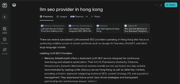 - GAIO(ジェネレーティブAI最適化)と「アンサーアセット」作成のために: 権威あるコンテンツを構築するために必要な深いリサーチを行うとき、Perplexityはあなたの頼りになるツールです。信頼できる幅広い情報源から素早く情報を収集し、検証することができます。